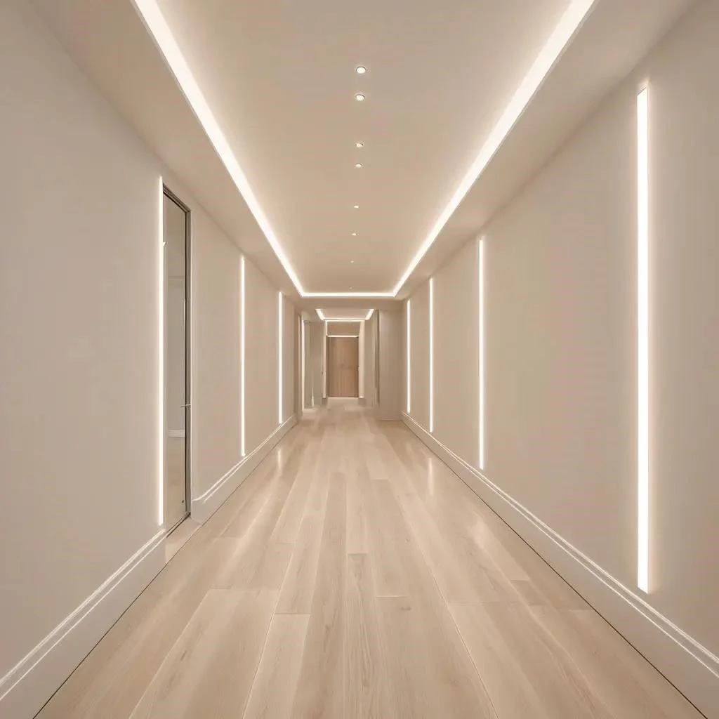 Планирование освещения прихожей без окон критично. Искусственный свет в коридоре многоуровневый. Он обеспечит функциональный и декоративный свет. Светодиодное освещение прихожей, с точечными и потолочными светильниками, создает яркое освещение. Имитация окна, фальш-окно, световые панели дают рассеянный свет, компенсируя отсутствие окон, помогает осветить прихожую, создавая эффект дневного света.