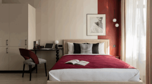 У окна, в ТВ-зоне, напротив кровати или на балконе показываем, где дизайнеры находят место для письменного стола в студиях. 1 Рядом с кроватью Если в квартире-студии стоит не диван, а полноценная кровать, удобно организовать рабочее место рядом с ней. Решение подходит и для прямоугольных, и для квадратных комнат. Стол не занимает отдельную зону и может …