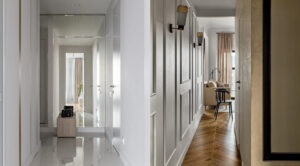 Витрина в торце гарнитура, кабинет-трансформер, прозрачная мини-гардеробная и другие классные идеи организации хранения, которые мы нашли у дизайнеров. 1 Шкаф с секциями разной глубины В этой спальне реализовали сложную и в то же время элегантную систему хранения. Спроектировали встроенный угловой шкаф: вдоль стены слева от входа стандартного размера, напротив кровати меньшей глубины. Также предусмотрели открытые секции. …
