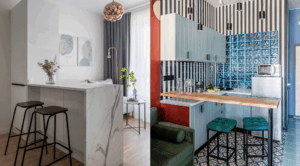 Куда поставить холодильник в маленькой студии? 9 примеров от дизайнеров
