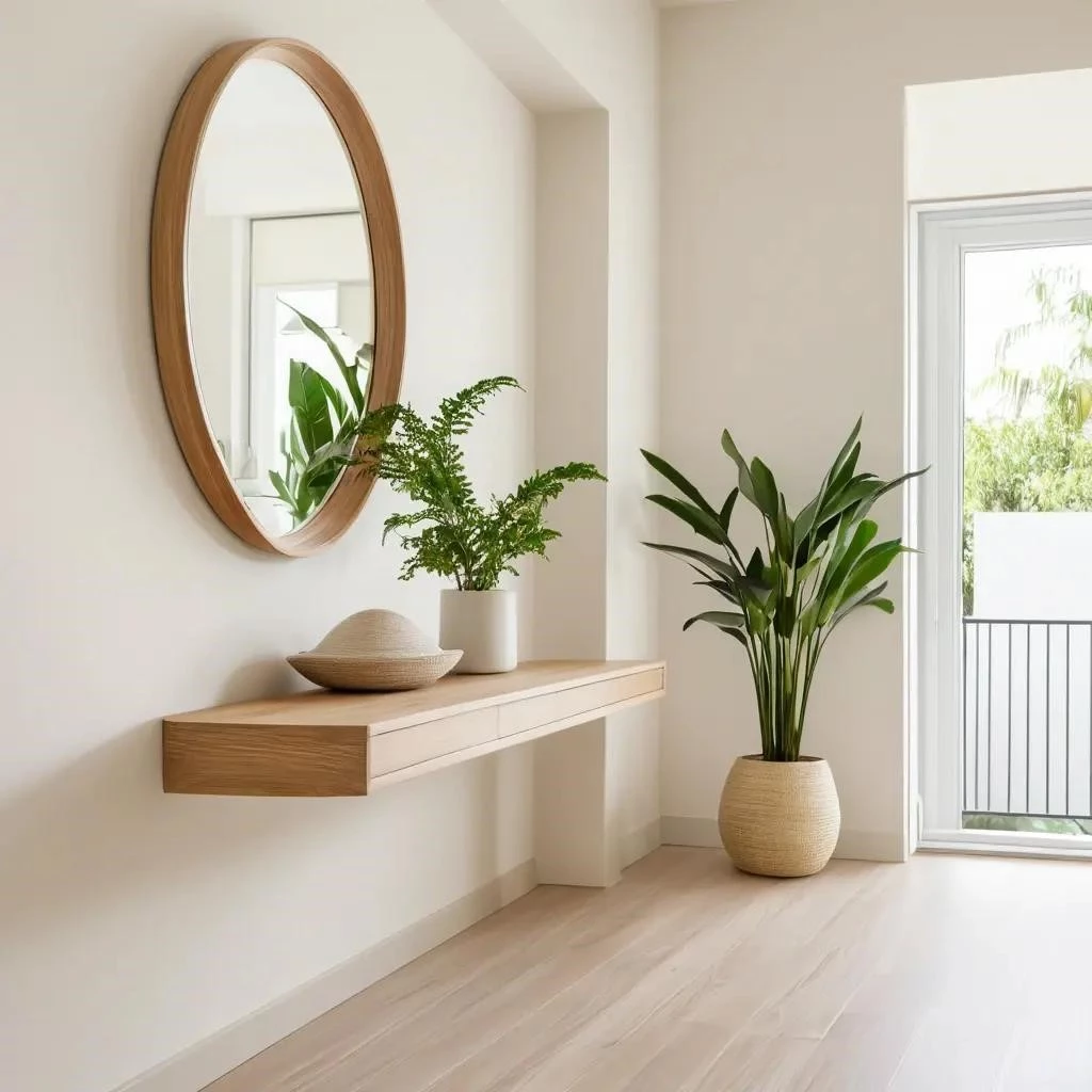 Зеркало в прихожей — не просто элемент декора, а важный функциональный объект. Оно позволяет оценить внешний вид перед выходом из дома и визуально расширяет пространство. Для маленькой прихожей дизайн, крупное зеркало на одной из стен — это проверенный способ добавить «воздуха». Его можно встроить в дверцу шкафа или повесить на стену. Расположение зеркала напротив входной двери или окна усилит эффект расширения, отражая свет. Современная прихожая часто использует зеркала необычных форм или с подсветкой, добавляя индивидуальности.